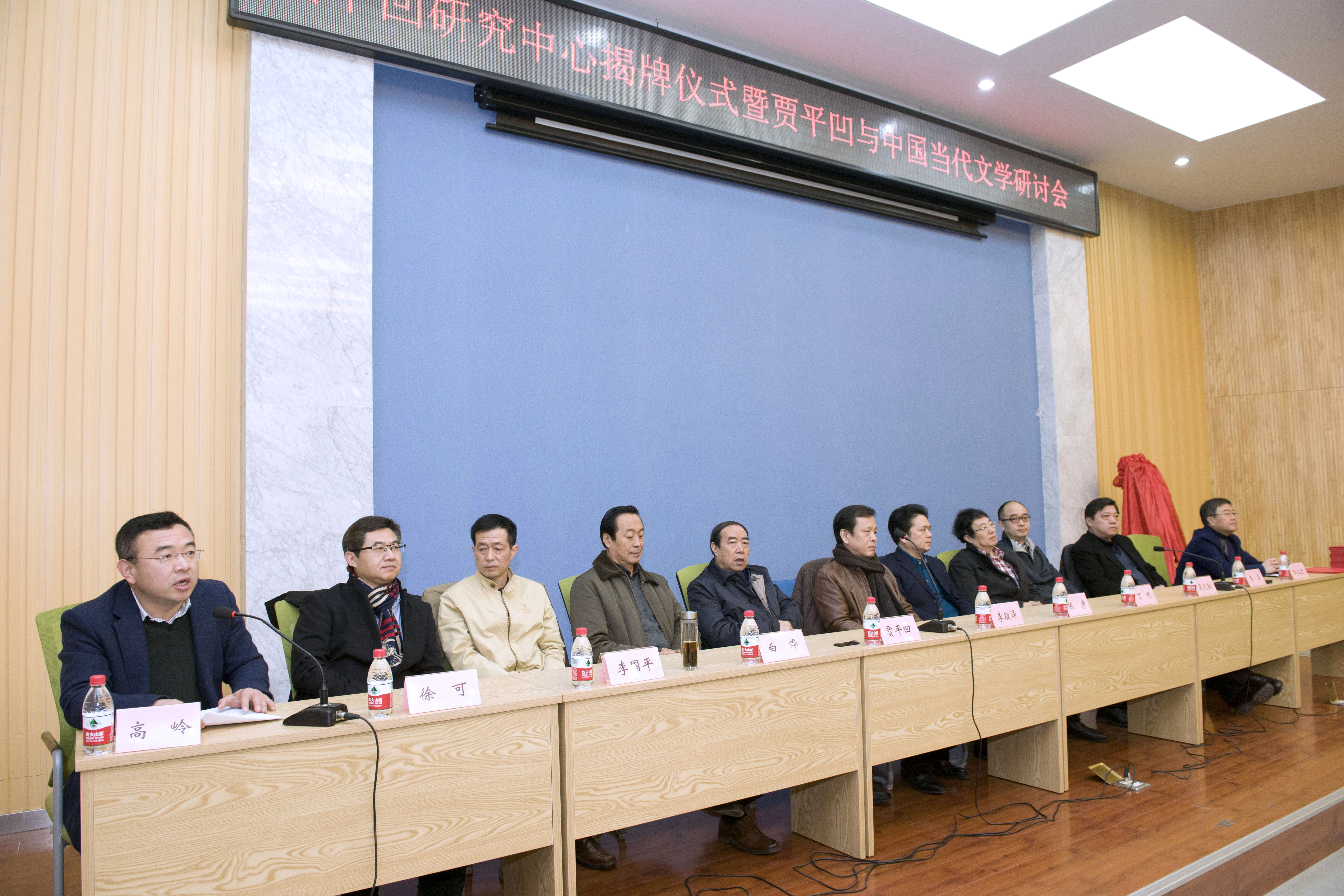 11月29日 上午,“贾平凹研究中心揭牌仪式暨贾平凹与中国当代文学研讨会”在我校举行。我校校长郭立宏与中国作协副主席、书记处书记李敬泽共同为“贾平凹研究中心”揭牌。中国当代文学学会会长白烨、中国现代文学研究会会长丁帆、省委宣传部副部长陈彦、中国现代文学馆馆长吴义勤、陕西省作协主席贾平凹、陕西省作协副主席李国平、《文艺报》副总编许可、新华社陕西分社社长李勇等出席仪式,来自陕西高校及科研院所的贾平凹研究专家、学者与必赢76net线路官网师生120余人参加了揭牌仪式。我校副校长高岭主持揭牌仪式
